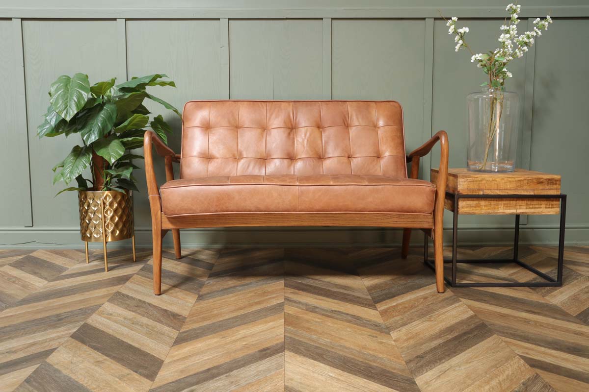 The Kelham Humber Scandinavian leather 2 seater sofa supplied in vintage brown real leather with ash frame. Style, comfort and practicality personified with this beautiful furniture, yesteryear retro design for the discerning style conscious of today. Put together with the single seater chair as a suite or use as an eclectic individual piece. Perfect for the corporate market to give your workspace that touch of Scandinavian style.